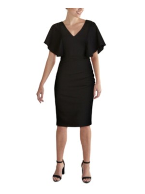 Женское черное платье-футляр KENSIE длиной до колена с V-образным вырезом и рукавами-накидкой, Черный