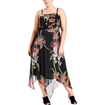 Женское черное шифоновое длинное платье макси City Chic с цветочным принтом BHFO 6246, Черный