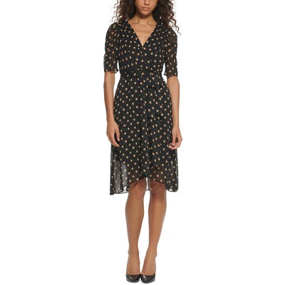 Женское черное шифоновое платье в горошек с запахом Tommy Hilfiger BHFO 9359, Black/tan