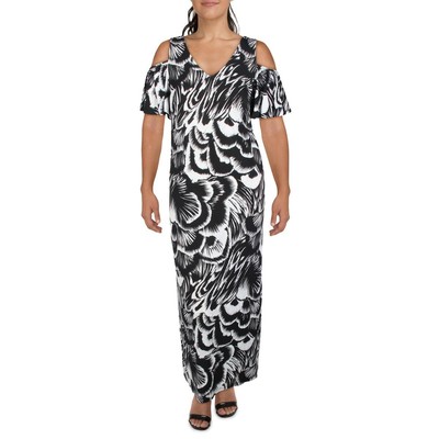 Женское черно-белое трикотажное платье макси с открытыми плечами Connected Apparel, 14 Вт, BHFO 4553, Black-white