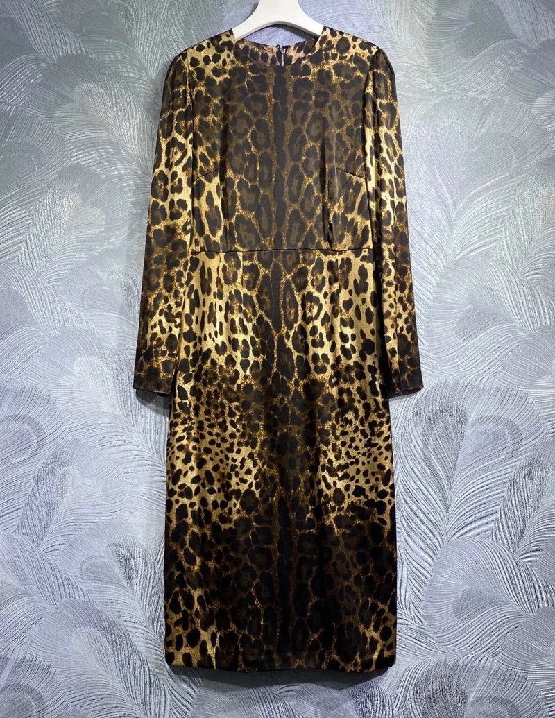 Женское шелковое платье с леопардовым принтом, облегающее платье-футляр с длинным рукавом, Осень-зима 2023