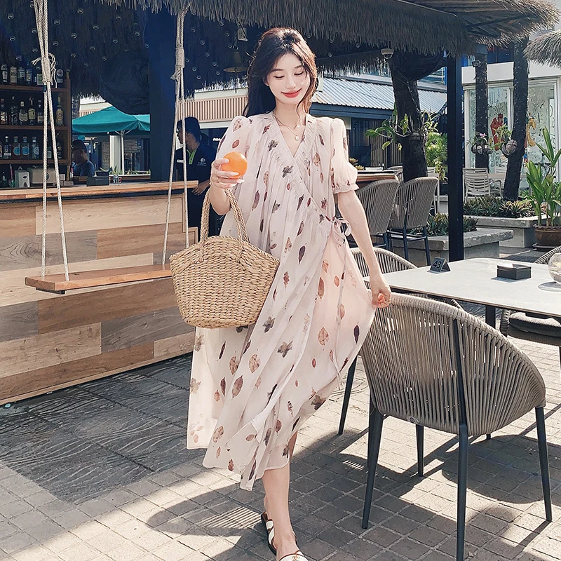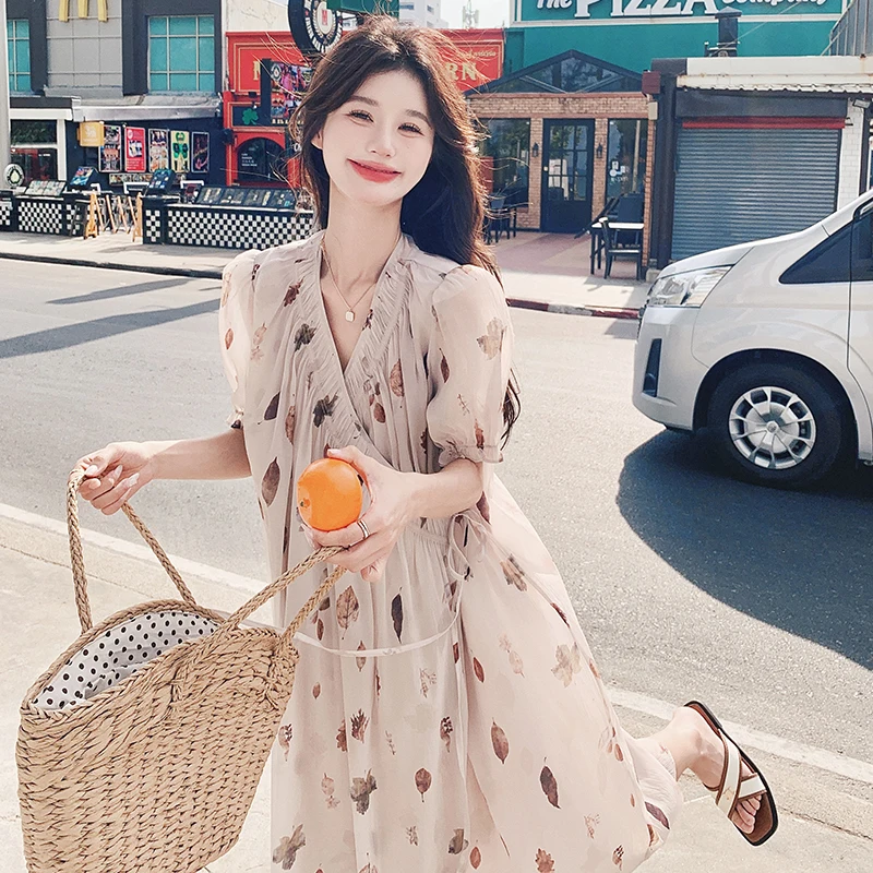 Женское шелковое платье-трапеция с V-образным вырезом и коротким рукавом