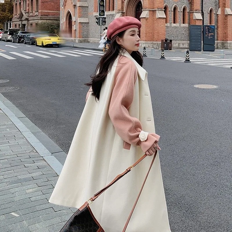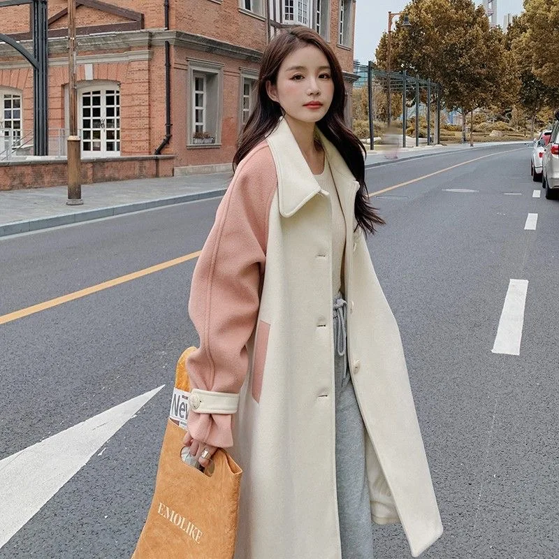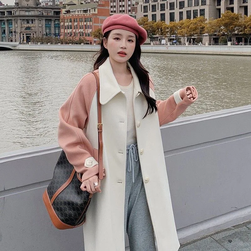 Женское шерстяное пальто до колен, осеннее пальто средней длины в французском стиле