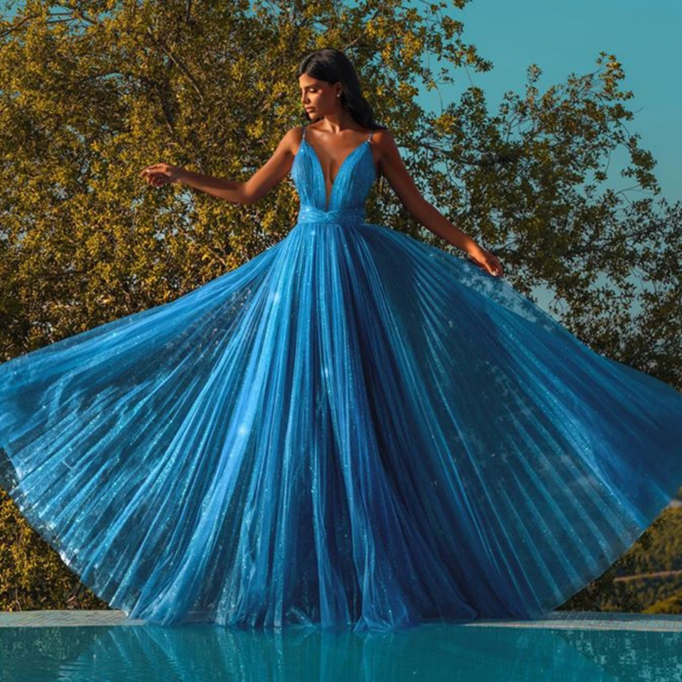 Женское шифоновое вечернее платье на бретелях-спагетти, с V-образным вырезом