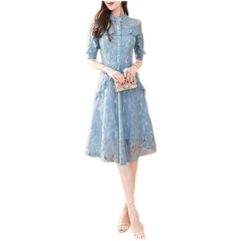 Женское шифоновое кружевное платье-трапеция, повседневное, с коротким рукавом, в стиле пэчворк, весна-лето, SS445