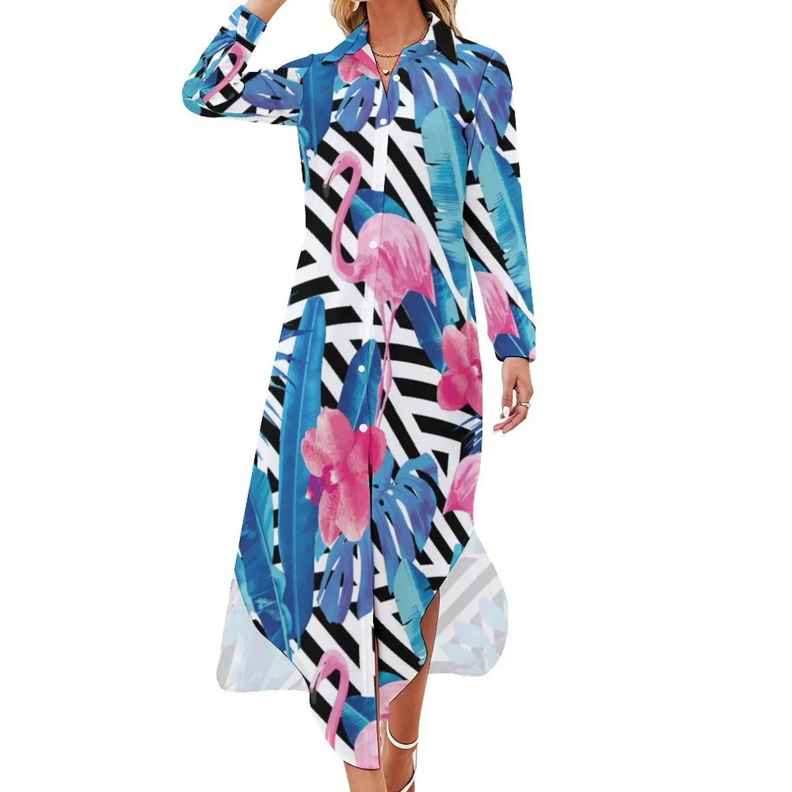 Женское шифоновое платье в полоску, с длинным рукавом и V-образным вырезом