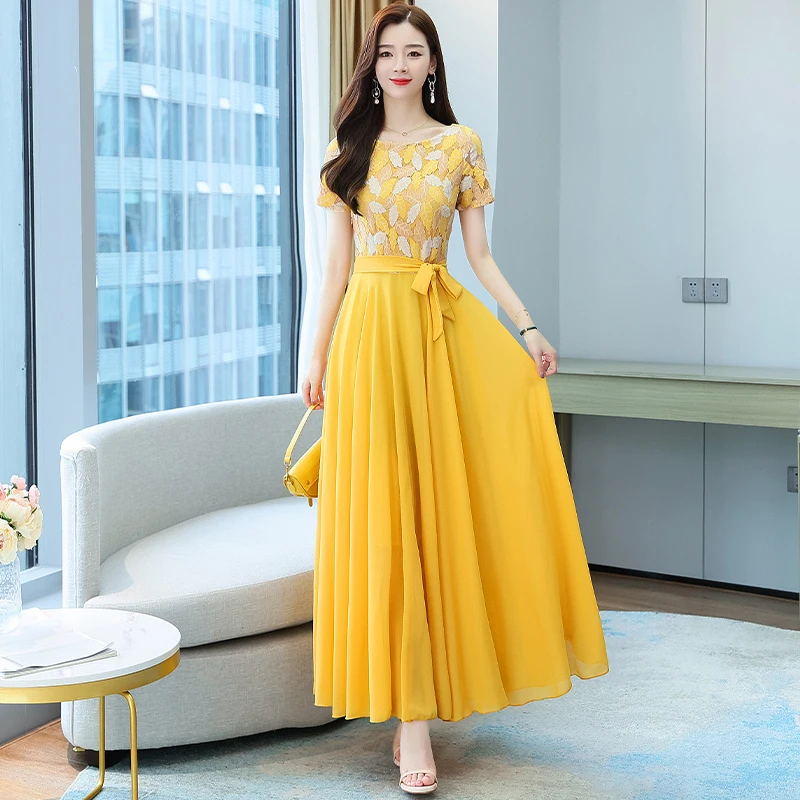 Женское шифоновое платье с коротким рукавом и круглым вырезом