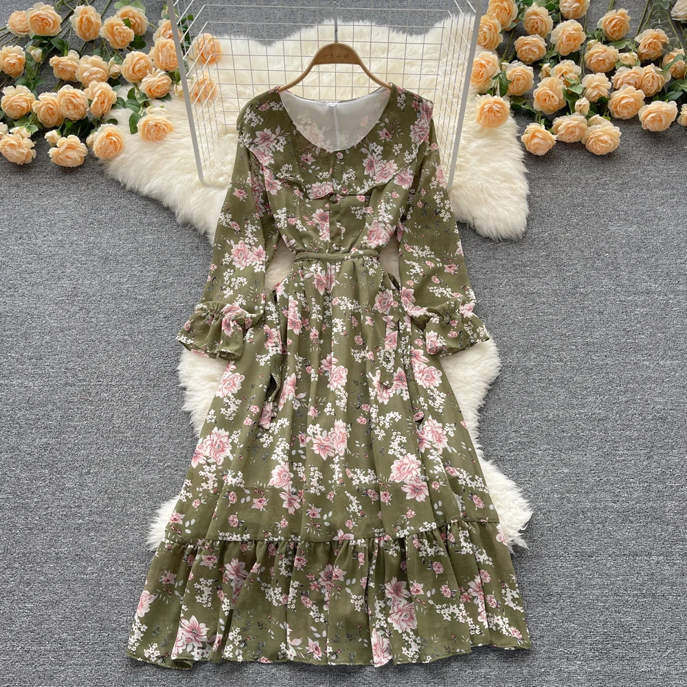 Женское шифоновое платье-трапеция с оборками, круглым вырезом и цветочным принтом