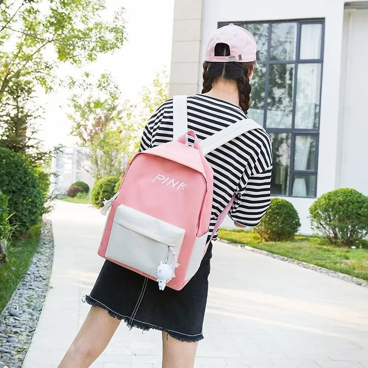 2018 Autumn New Style Backpack Large Capacity College Style Canvas Middle School Students School Bag Contrast Color School Bag