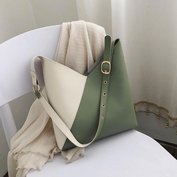 splicing contrast pu leather bucket bags for women 2020 summer crossbody bags lady shoulder messenger bag female travel handbags