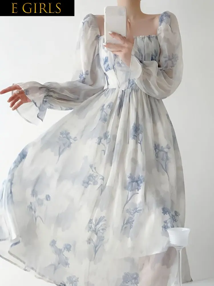 Женское элегантное шифоновое платье средней длины, Элегантное Длинное пляжное платье с цветочным рисунком в винтажном стиле, лето 20232023