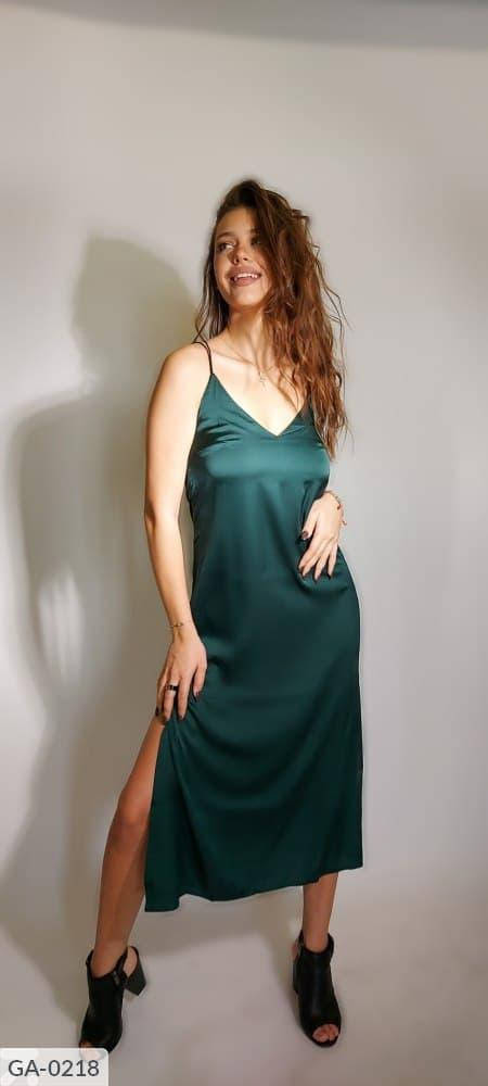 Женственное однотонное шёлковое платье с разрезами по бокам бутылка, 46