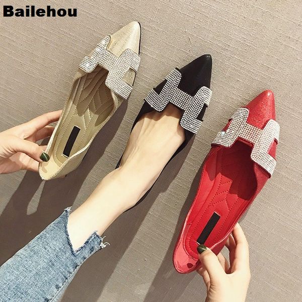 Женщины Плоские Балетные Туфли Bling Кристалл Острым Носом Квартиры Обувь Элегантн