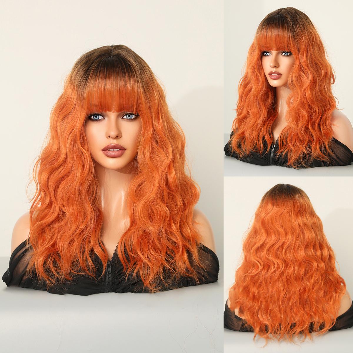 Жен. Волосы 50 см Искусственные волосы Разноцветные волосы Длинные волосы Вьющиеся волосы, розовые волосы Сетка для волос Головные уборы Полный головной убор Натуральный и реалистичный парик 50cm_20INCH оранжевый
