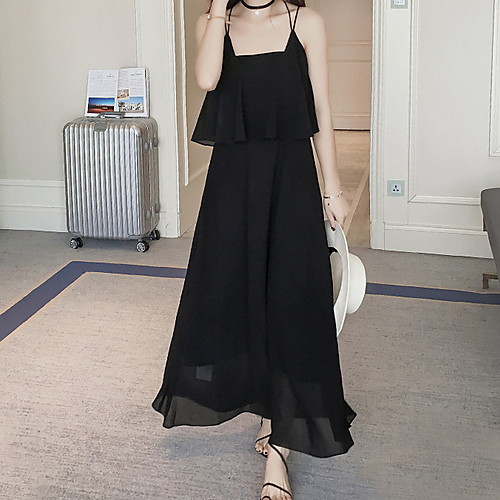 Жен. Тонкие Футболка С летящей юбкой Рубашка Платье На бретелях Макси