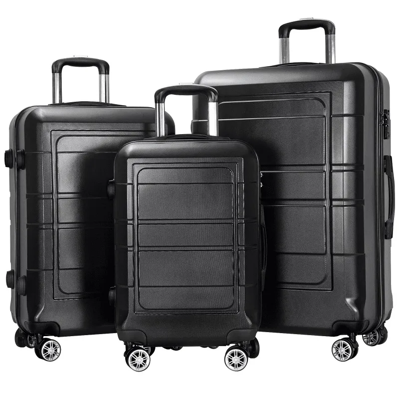 Жесткий багажный набор из 3 предметов, с замком TSA и черными чемоданами 20/24/28 дюймов