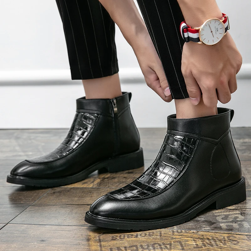 Мужские Ботильоны из лакированной кожи, черные однотонные ботинки, удобная повседневная обувь, Осень-зима