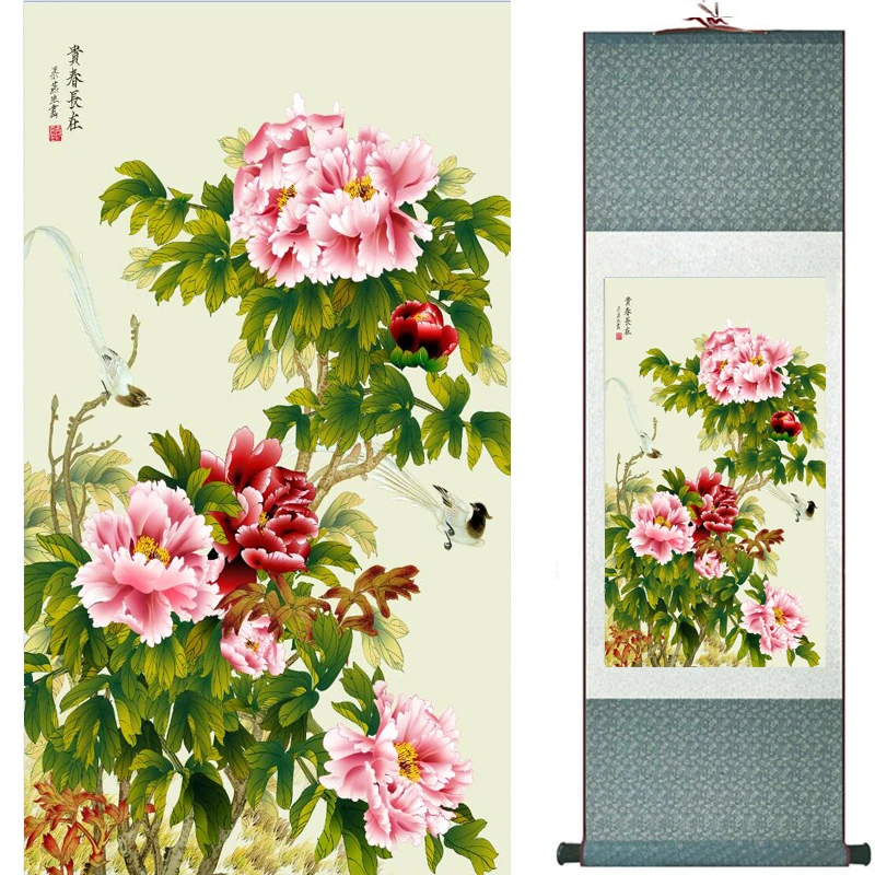 Живопись с пионами украшения для дома и офиса китайский свиток живопись птиц Пион и птицы paintings201806261233