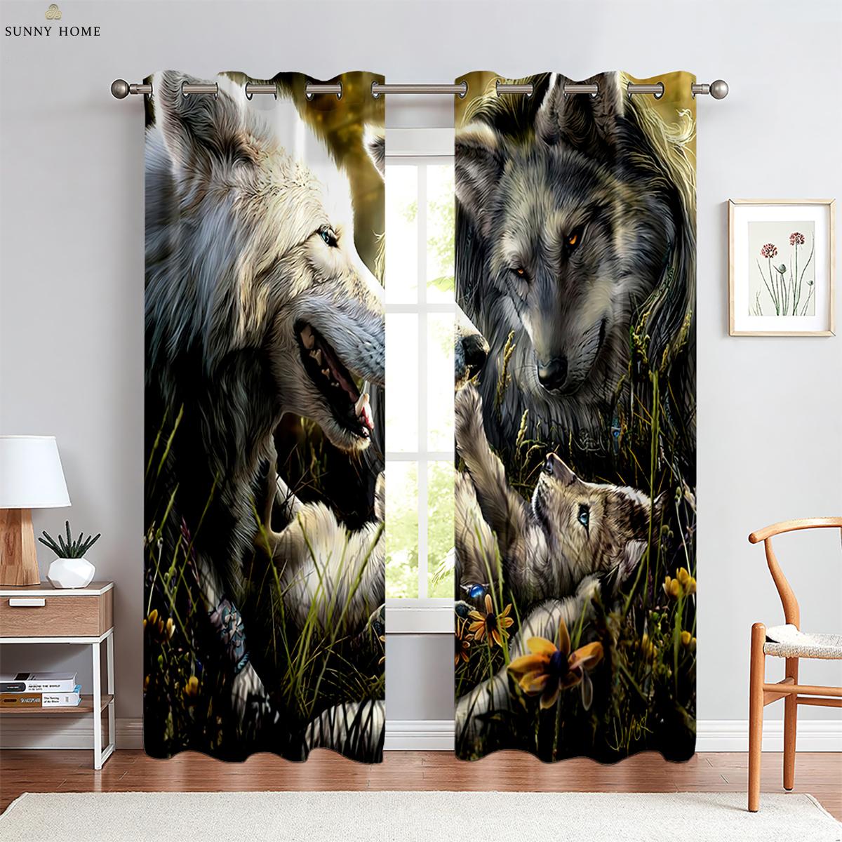Животное Волк 3D Печать Шторы Затемнение Теплоизоляция Шторы Окно Декор Шторы Кухня Гостиная Спальня Шторы W100xH130(CM) folio&Grommet Top