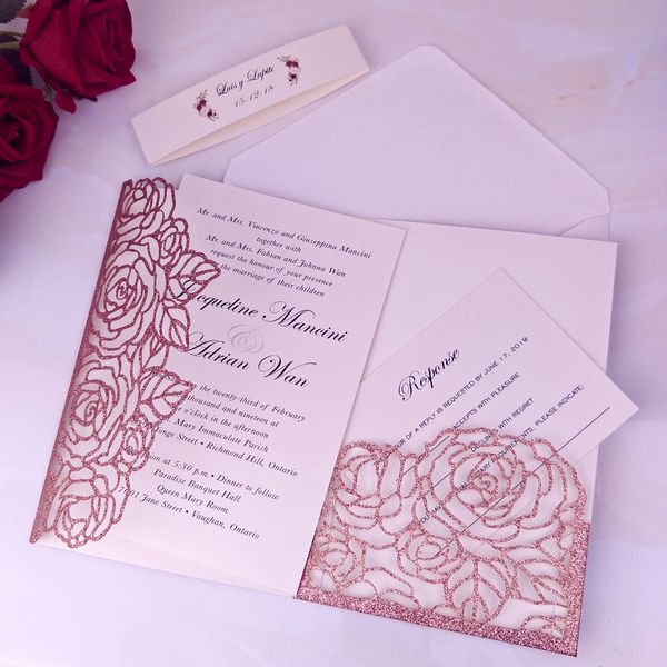 Живот Pink Gold Glitter Laser Cut свадебные приглашения карты с RSVP карты Группа Блеск приглаш