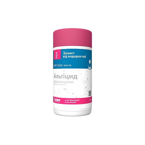 BWT AQA marin ALGICID — быстродействующих жидкий альгицид. Средство не образует пены, не имеет запаха и привкуса при допустимой концентрации. Кроме того, альгицид имеет высокую концентрацию (18 %) и хорошо комбинируется с другими средствами для ухода за бассейном.