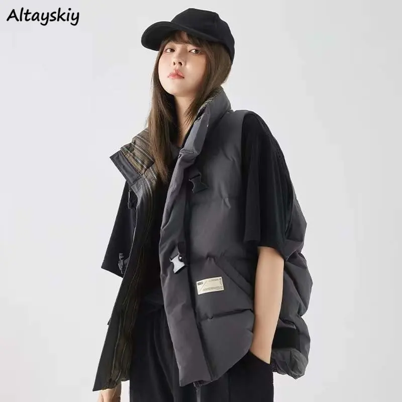 Жилеты женские плотные повседневные мешковатые шикарные универсальные зимние мягкие теплые карго в Корейском стиле Модные Женские однотонные простые минималистские пальто