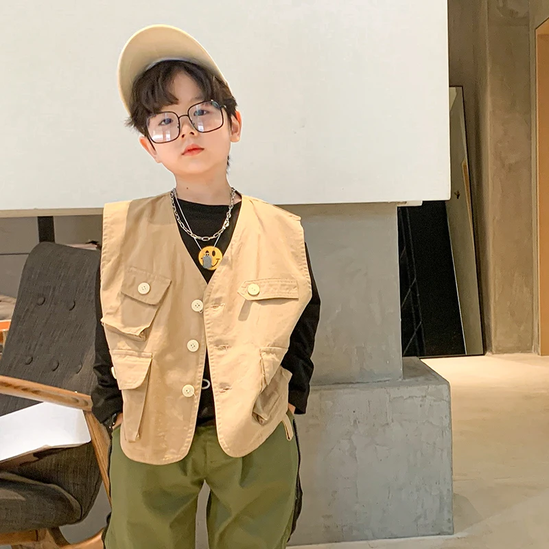 Жилет для мальчиков, детская одежда, Новинка весна-осень 2022, красивый детский жилет для малышей, рабочая одежда, топы, верхняя одежда