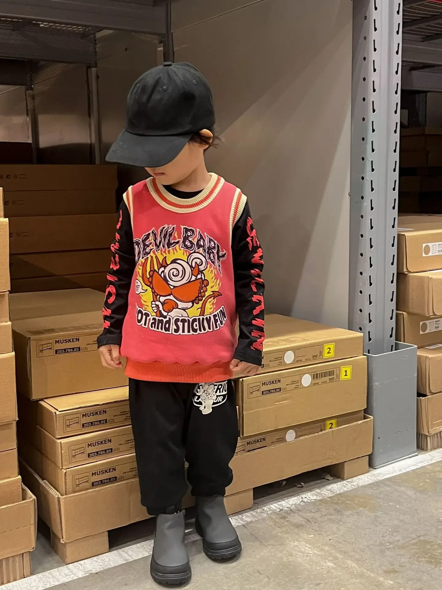 Жилет для мальчиков, новинка 2023, черный брендовый жилет Super Tide с японской пустышкой-демоном, бархатный жилет