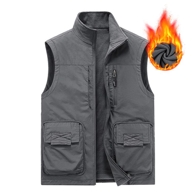 Жилет из утолщенного бархата для людей среднего возраста с основой для сохранения тепла и повседневным жилетом, с множеством карманов с обеих сторон 6XL серый