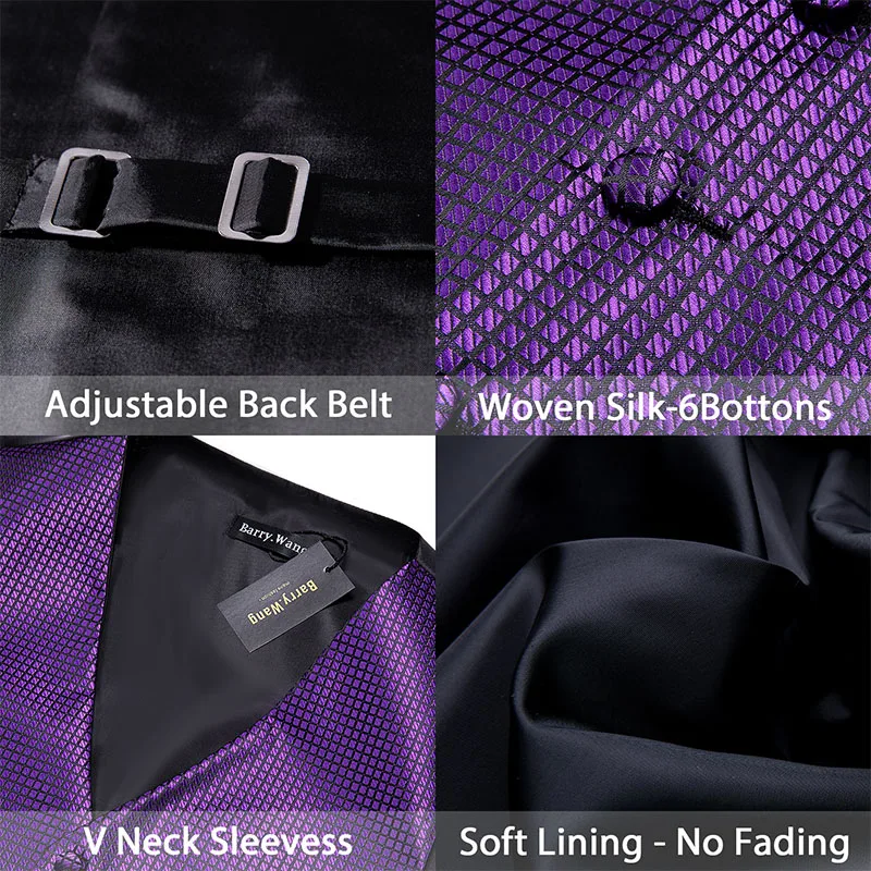 Жилет мужской, жаккардовый, классический, фиолетовый, Карманный платок для костюма