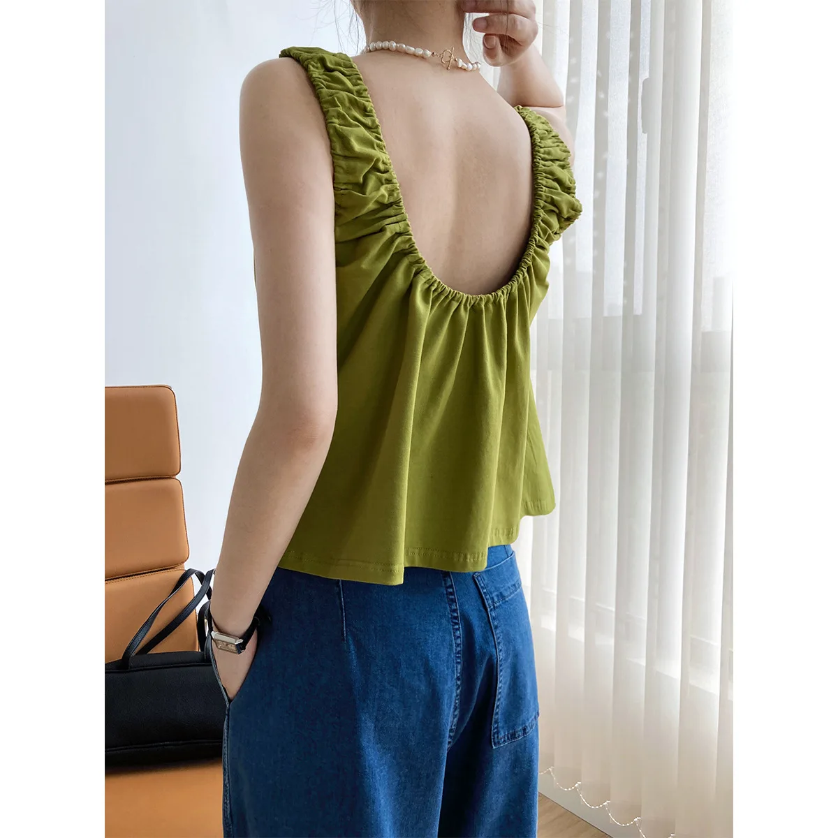 Жилет на бретелях, с широкими лямками, лето 2021, верхняя одежда, Базовая Блузка без рукавов