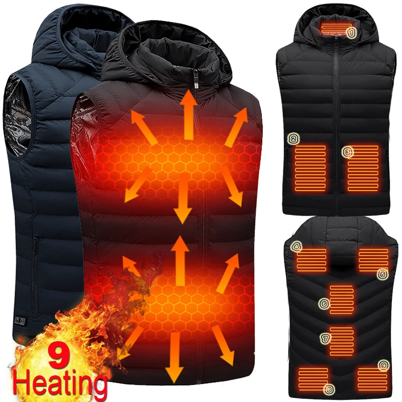 Жилет с подогревом для мужчин и женщин, теплый жилет с Usb-зарядкой, одежда для охоты, зимняя куртка с подогревом, 9 мест