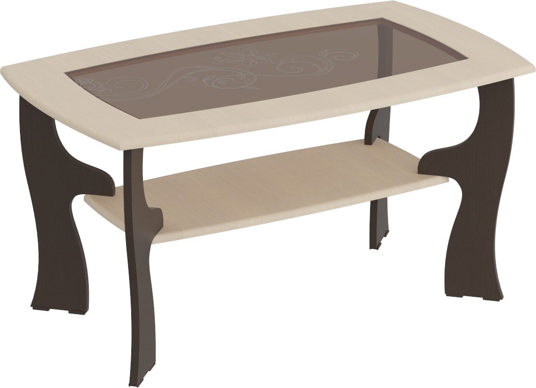 журнальный столик, 1000x600 мм, высота 525 мм, материал: ЛДСП/стекло (столешница), ЛДСП (опоры), бежевый/коричневый