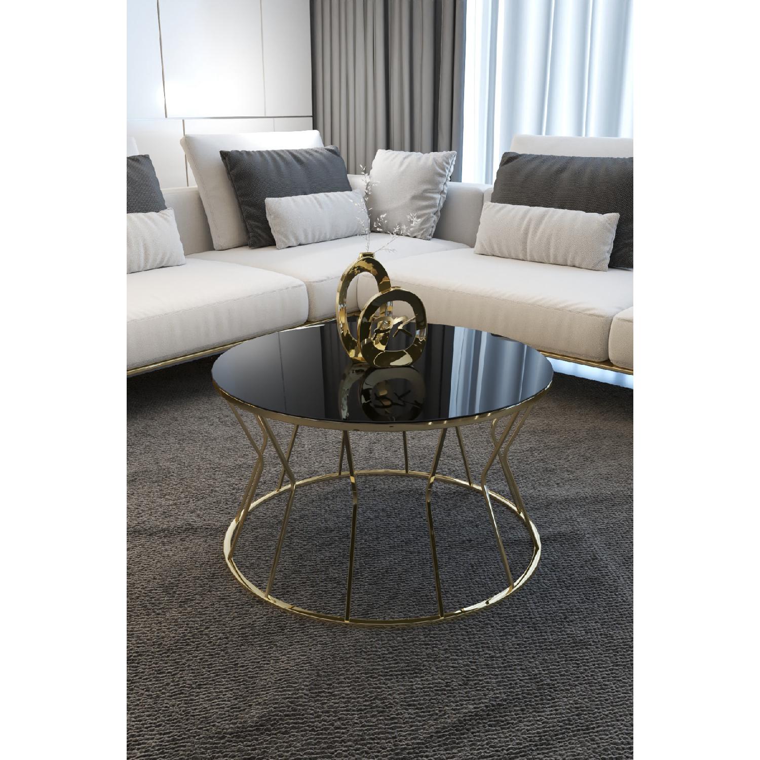 Журнальный столик «Песочные часы» с металлической ножкой золотого цвета, черное зеркало