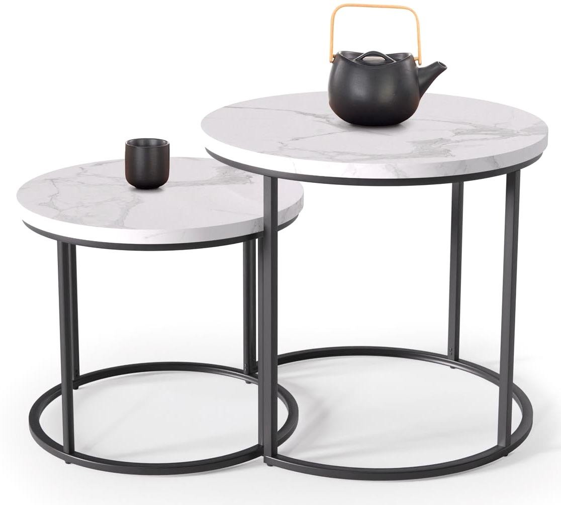 Журнальный столик Halmar Oreo (2 шт, белый мрамор/черный)