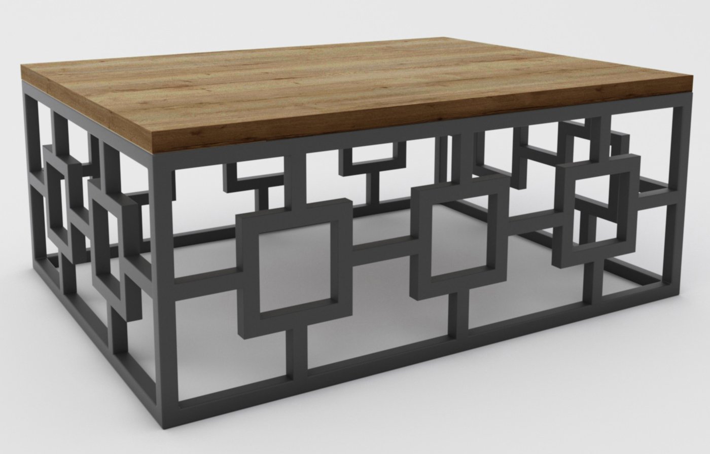 Журнальный столик Hype Mebel Лок 60x80 (черный/дуб галифакс олово)