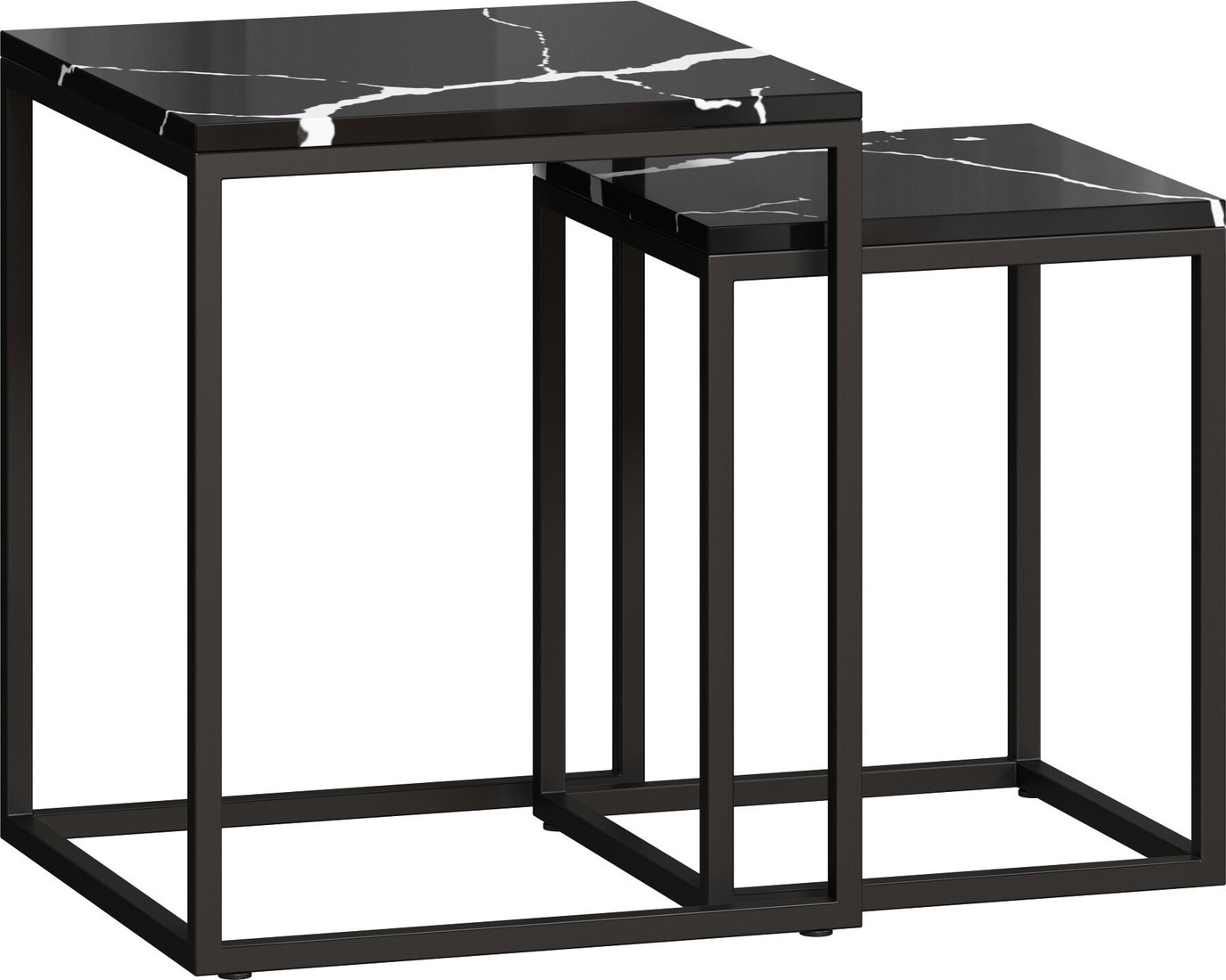 журнальный столик, набор 2 шт, 500x500 мм, высота 600 мм, материал: искусственный камень (столешница), окрашенная сталь (опоры), черный