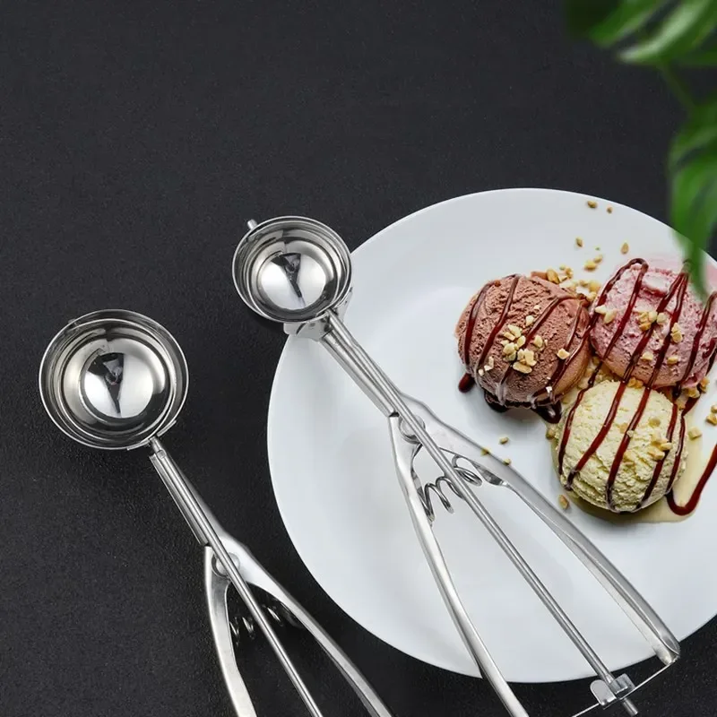 Ice Cream Scoop Kitchen Tools 3 Size Stainless Steel Spring Handle Mash Potato Watermelon Ball Scoop Home Kitchen Accessories