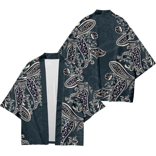 ethnic clothing cashew flowers printed kimono couple women men japanese traditional casual loose thin cardigan coat asian clothes harajuku, Red