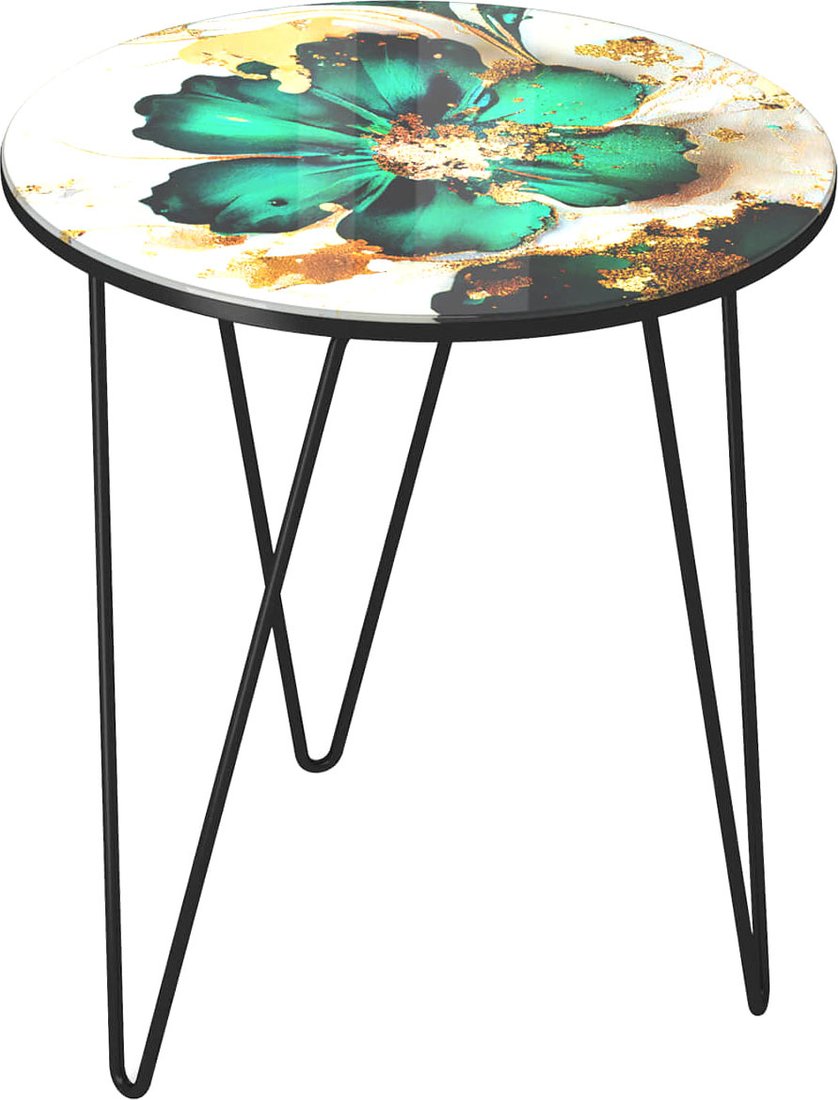 журнальный столик, 400x400 мм, высота 462 мм, материал: стекло (столешница), окрашенная сталь (опоры), бежевый/зеленый
