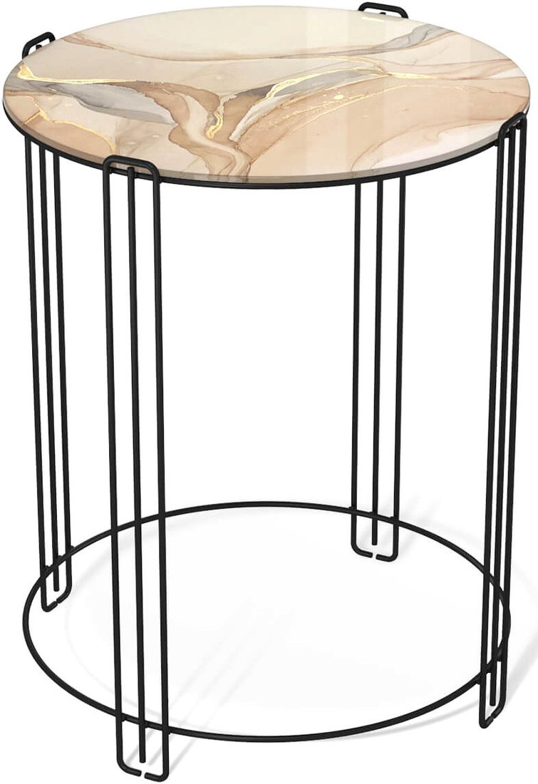 журнальный столик, 363x363 мм, высота 450 мм, материал: стекло (столешница), окрашенная сталь (опоры), бежевый