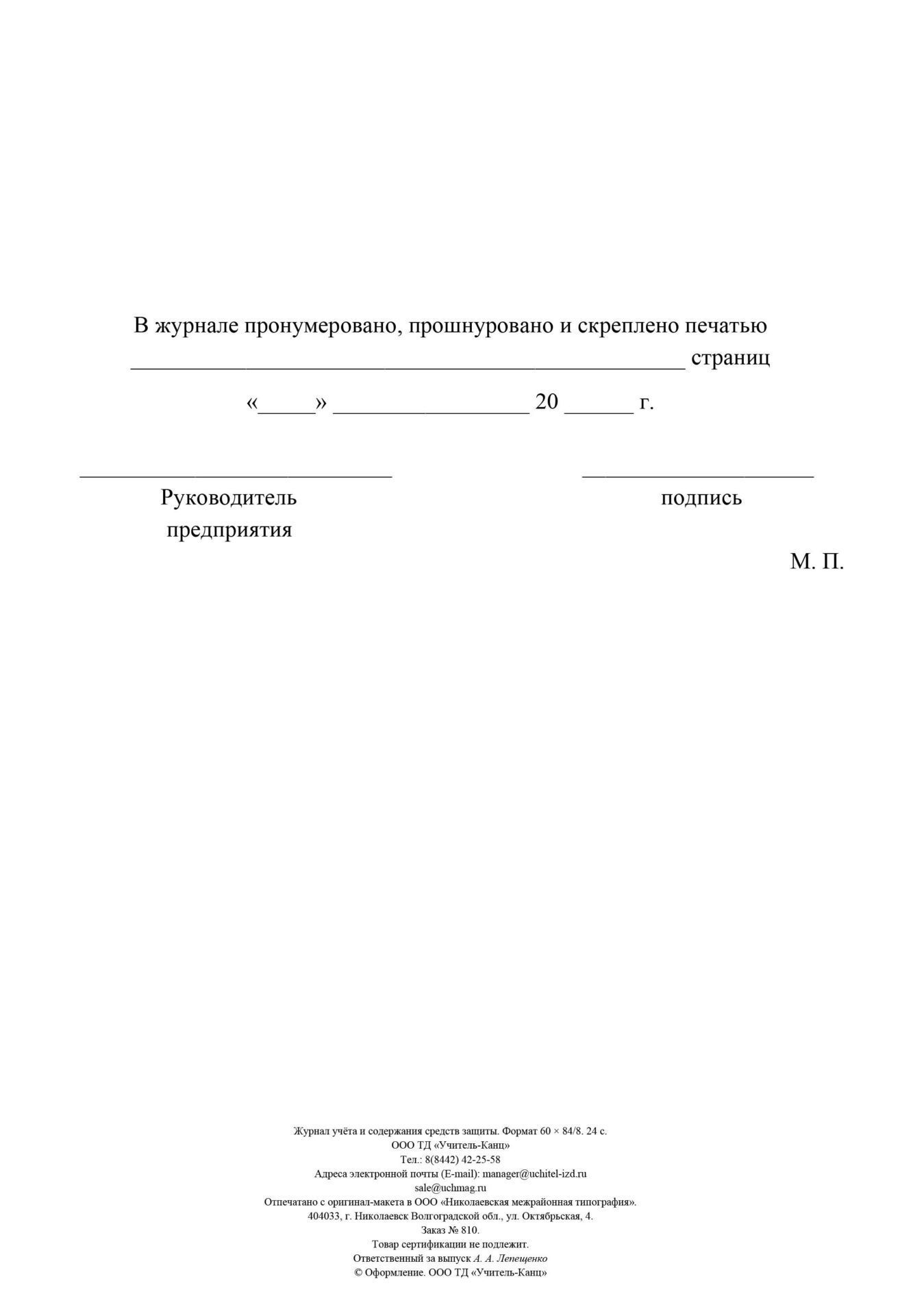 Журнал учета и содержания средств защиты