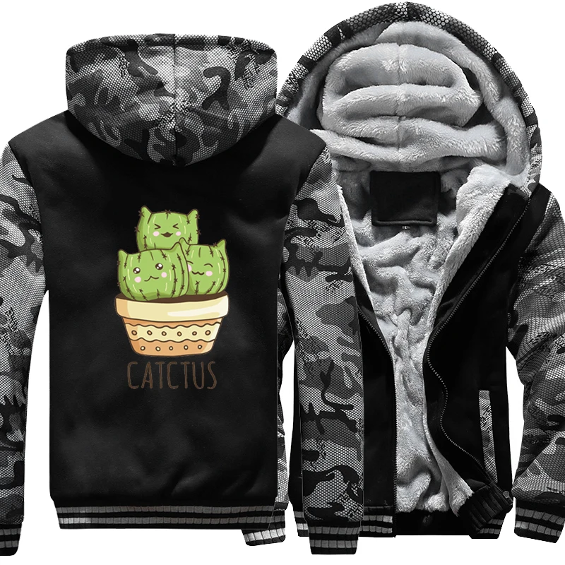 Забавная Милая мужская одежда Catctus в виде кошки, Утепленная зимняя камуфляжная куртка, флисовое пальто с капюшоном, толстовки большого разм...
