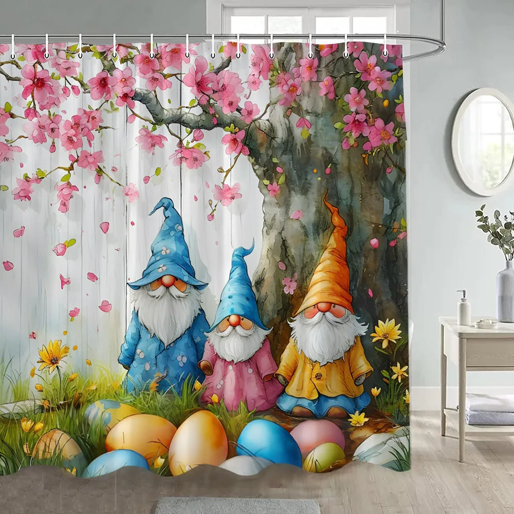 Забавная Пасхальная занавеска для душа, розовые цветы, дерево, милый эльф, кролик, яйца, весеннее растение, Мультяшные занавески для ванны, ткань, декор для ванной комнаты