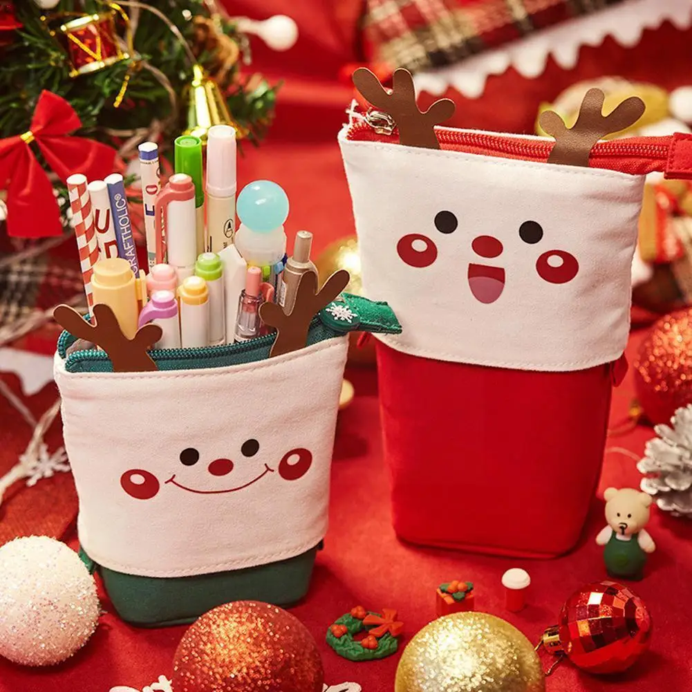 Рождественский выдвижной милый пенал, школьные канцелярские принадлежности, Подарочный холщовый держатель для хранения, кавайная сумка, р...