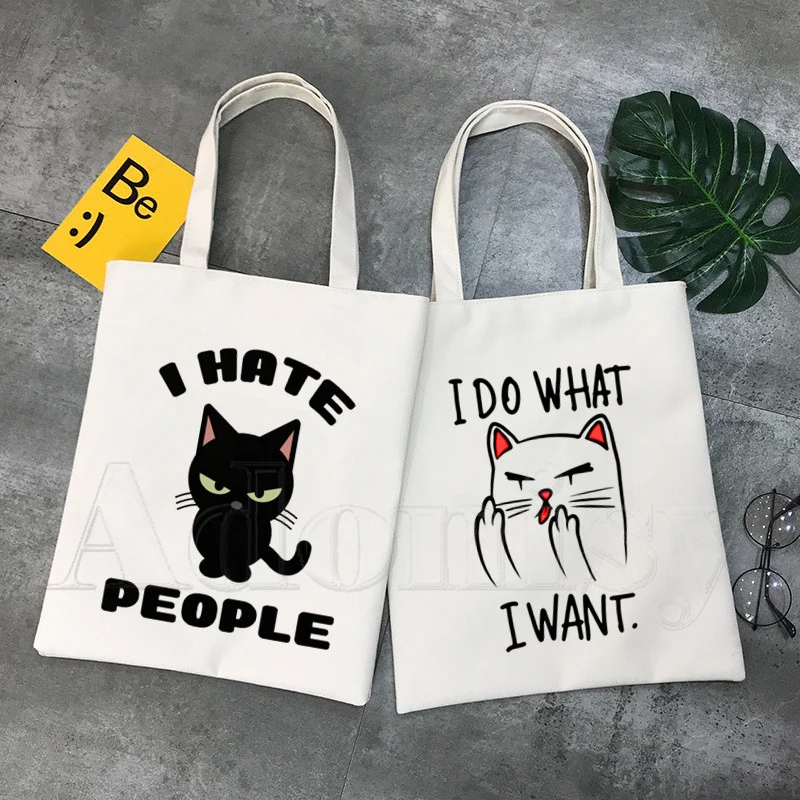 Забавная кошка «я делаю то, что хочу», Корейская сумка-шоппер Ulzzang, Холщовая Сумка-тоут с принтом, сумки, женская сумка в стиле Харадзюку, сумки на плечо