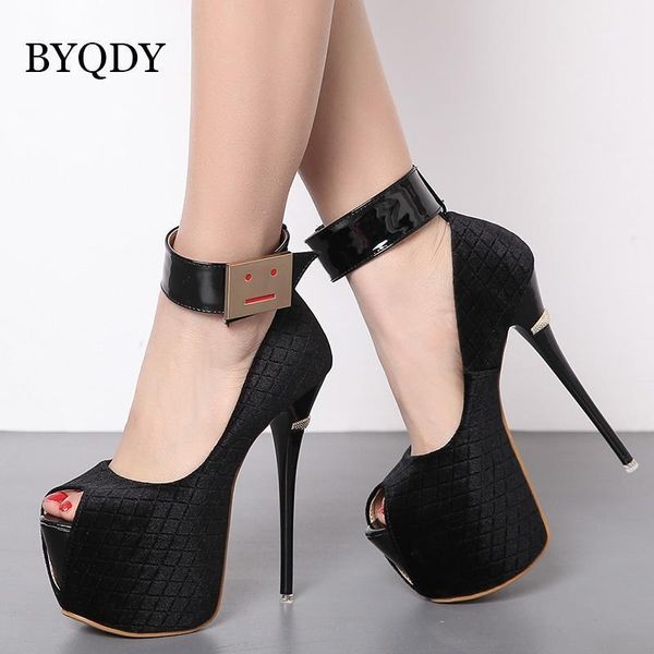 byqdy women extreme high heels pumps platform open peep toe buckle strap stripper heels pumps 7cm lady shoes spring autumn shoe1, Black