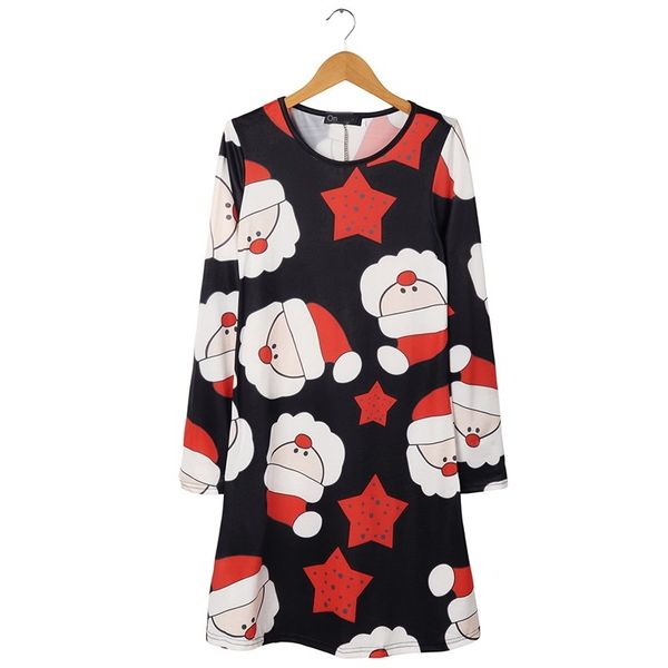 женское дизайнерское платье рождество с длинным рукавом печатное платье средней высоты юбка, Black;gray