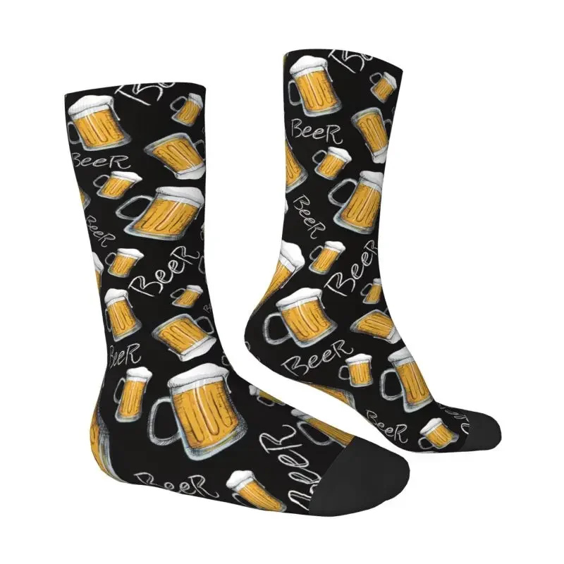 Забавные Мужские Носки с рисунком пивной кружки, удобные теплые носки унисекс с 3D-принтом