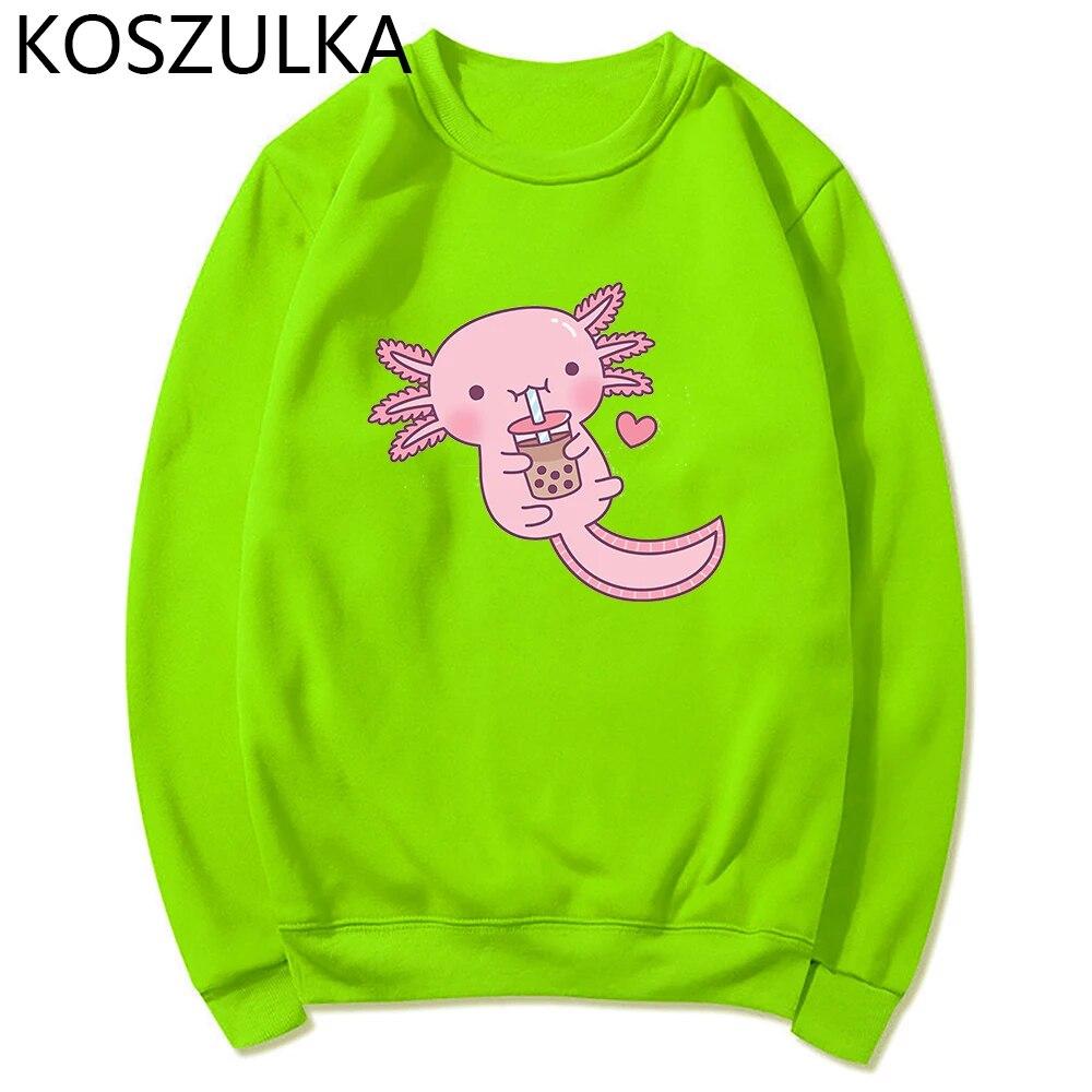 Забавные женские милые толстовки с капюшоном «Аксолотль любит пузырьковый чай» Толстовка с принтом Свободная толстовка с капюшоном большого размера с мультяшным принтом Уличная одежда Розовая одежда 3XL